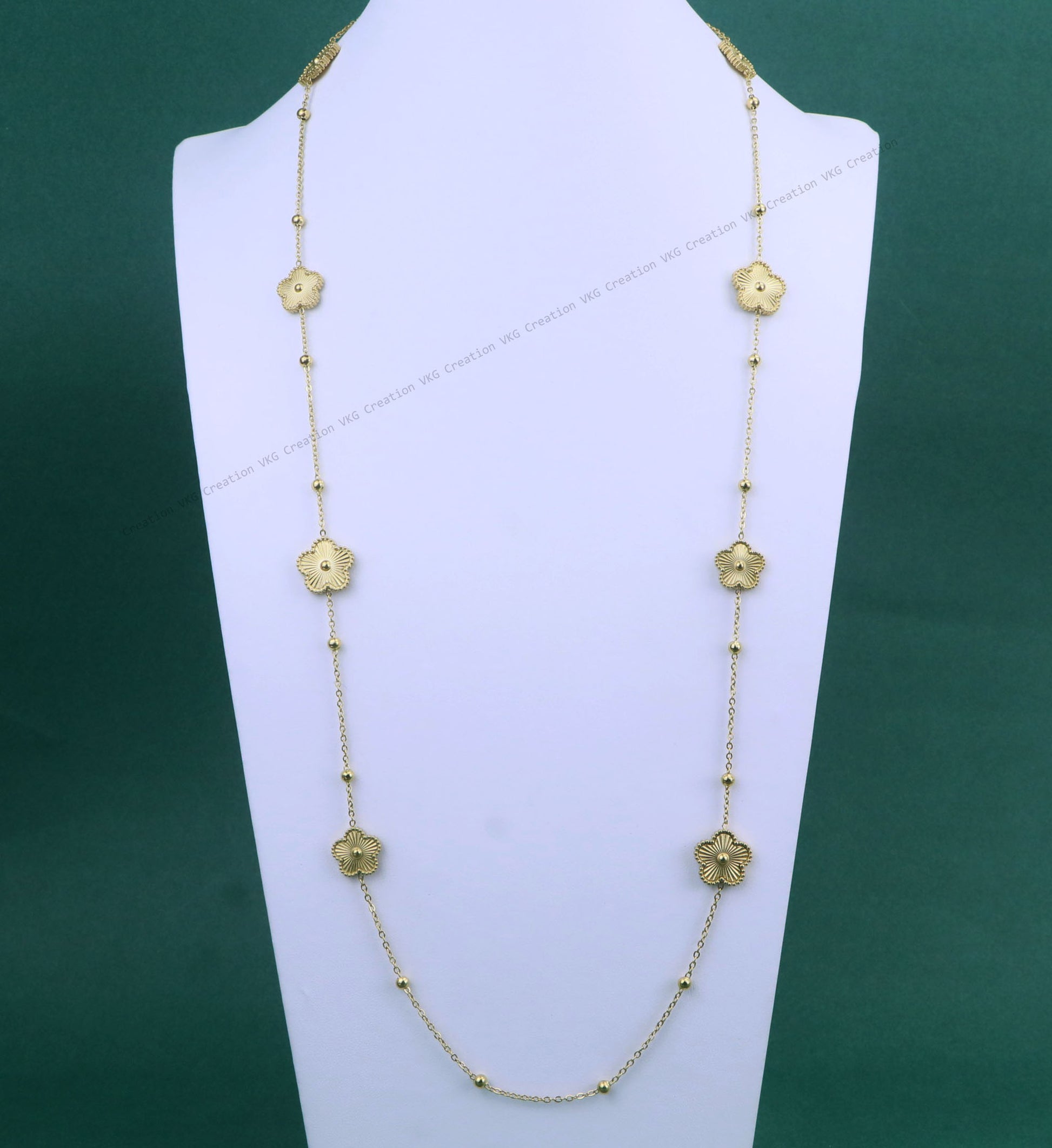 Long Gold 8 Charms 5 leaf Clover Flower Necklace,Waterproof Double side Clover Flower Necklace
